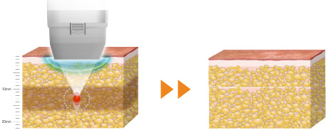 皮膚表面ではなく脂肪層に焦点を合わせ70℃以上の高温にすることでエネルギーを最大限に高めています。